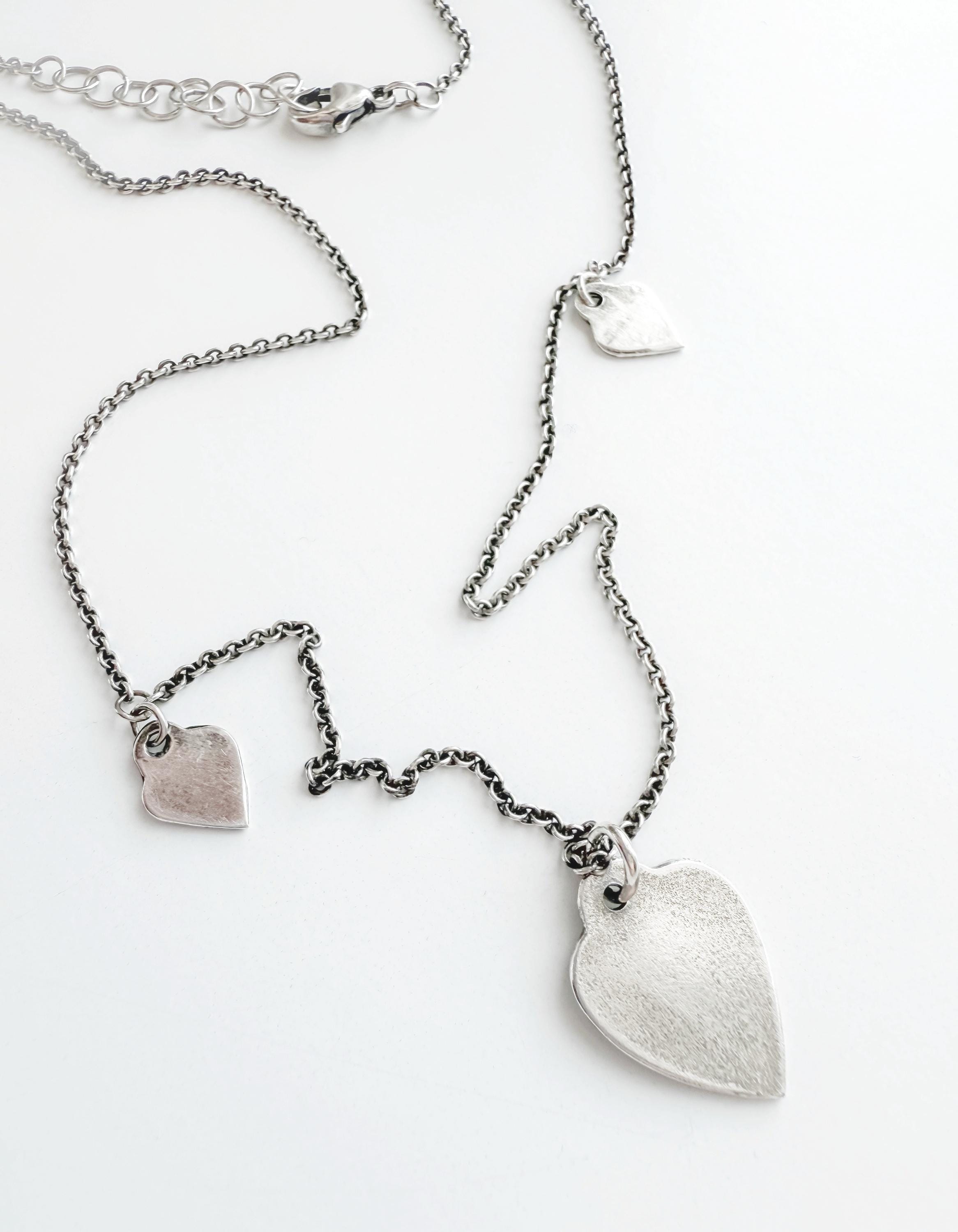 Three of my delicate sterling lotus charms hang from sterling cable chain. This simple piece brings interest and texture to your look. It is beautiful on its own or layered with other pieces. The charms have been oxidized to bring out the details and tumble polished to a beautiful glow.