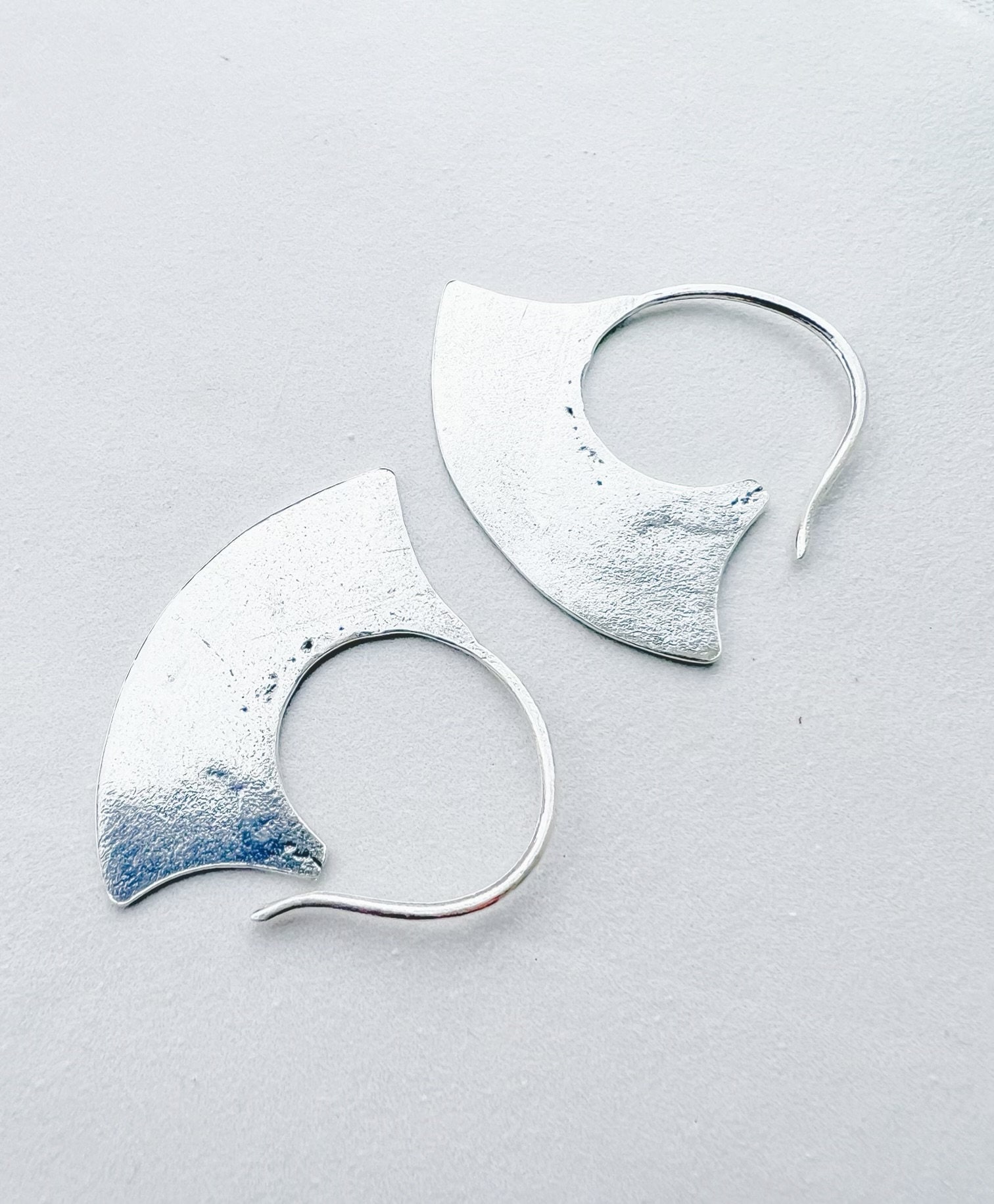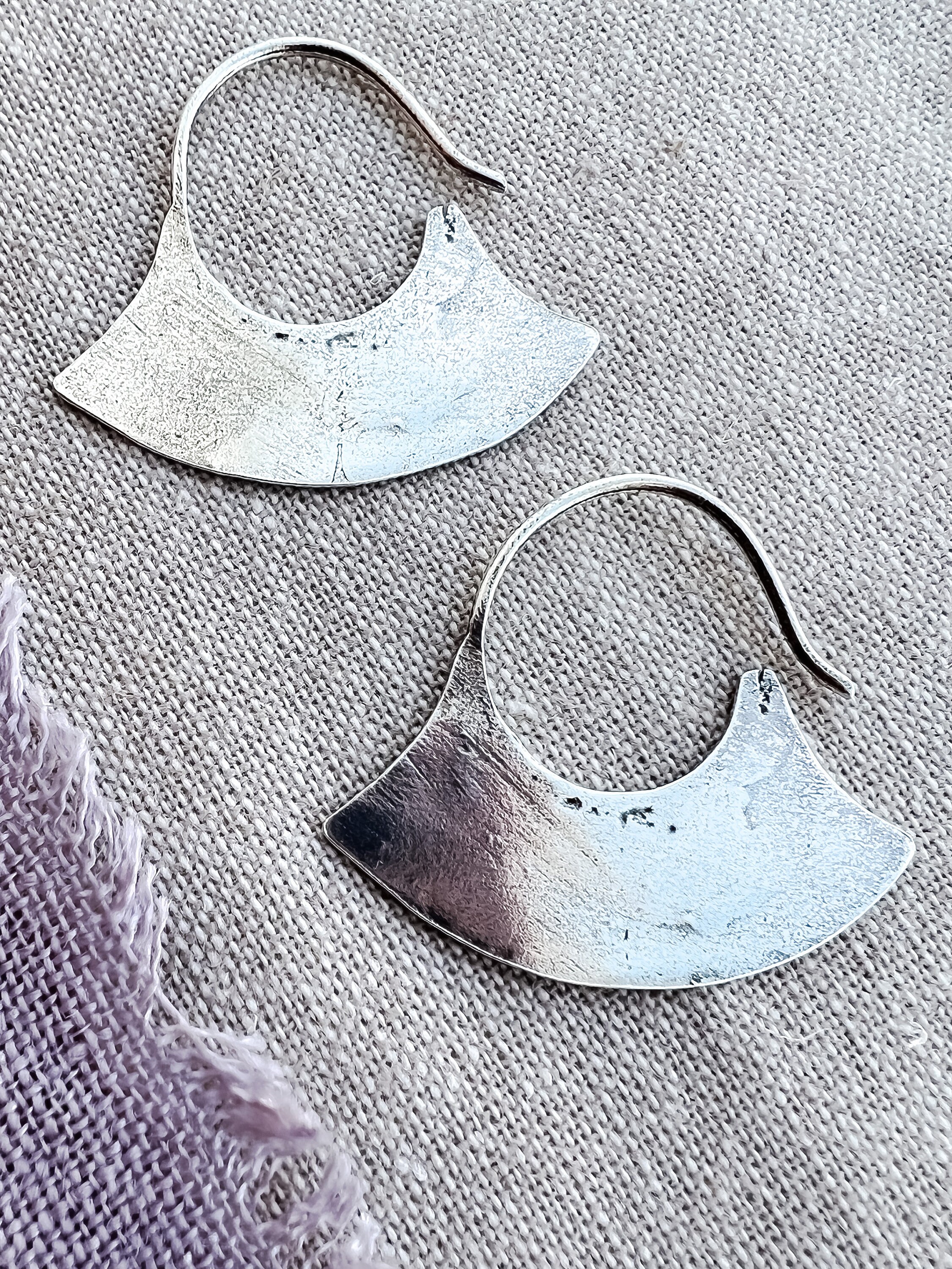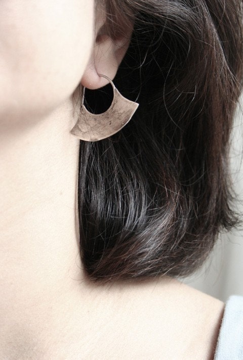 Inspired by ancient Mapuche metalwork - the earliest forms made with silver coins from the Conquistadors. The traditional Upul earrings were made with a single piece of metal and one was often worn by the chief as a symbol of power. Measures just over 1". Perfect everyday earrings.