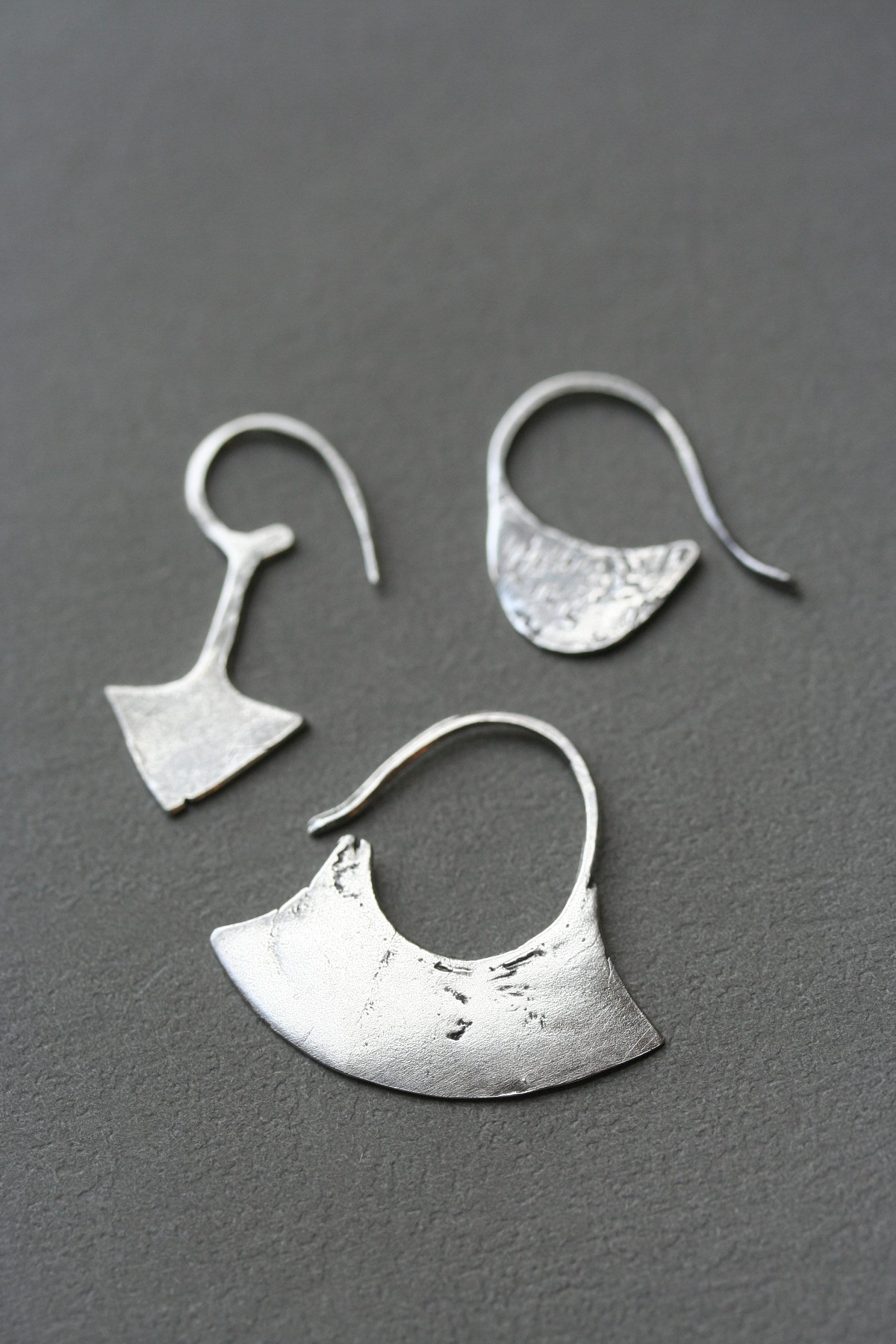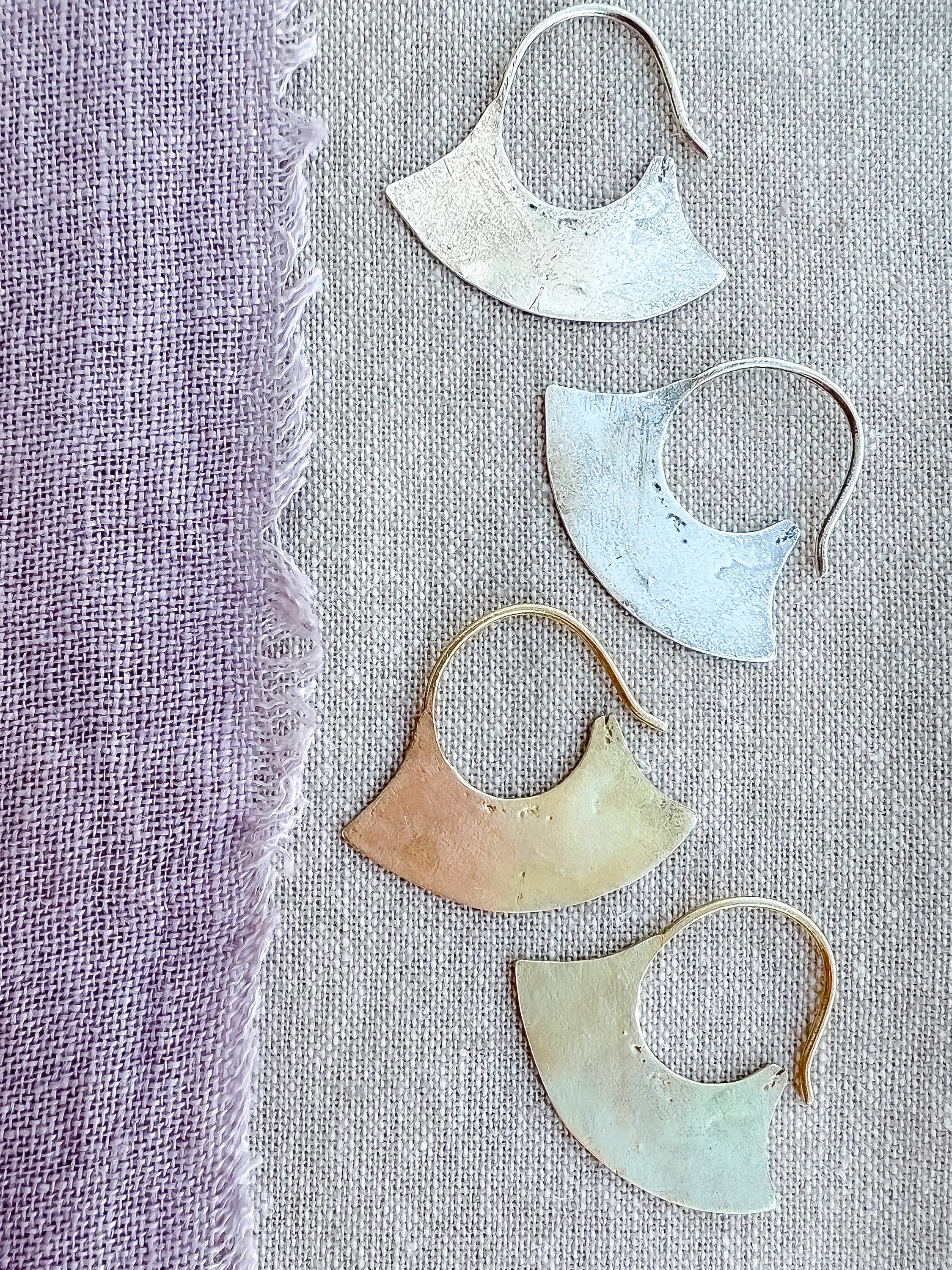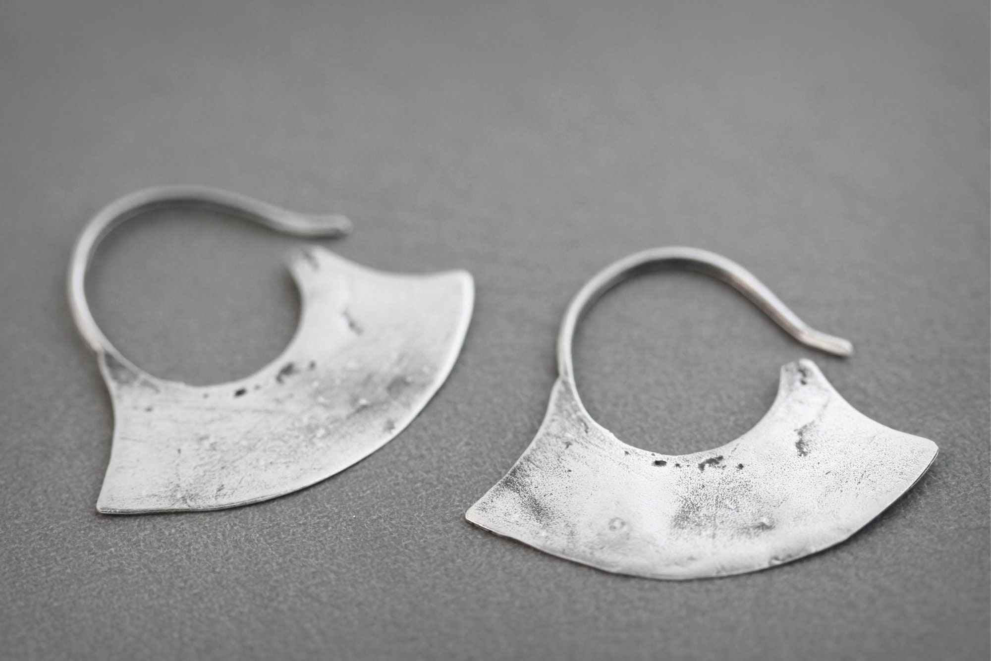 Inspired by ancient Mapuche metalwork - the earliest forms made with silver coins from the Conquistadors. The traditional Upul earrings were made with a single piece of metal and one was often worn by the chief as a symbol of power. Measures just over 1". Perfect everyday earrings.